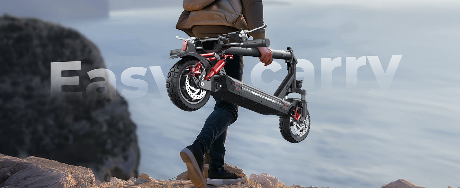 Its 800W motor ensures a fast and smooth ride. The 10 inch off road pneumatic tires and front and rear shocks can effectively help absorb the impact of bumps on your rides. This electric scooter is equipped with a 48V 10Ah BMS intelligent battery to increase the reliability of your off road travels. The isinwheel GT1 (48V) 800w Off Road Electric Scooter is a true people's favorite. The isinwheel GT1 (48V) 800w Off Road Electric Scooter perfectly combines portability and performance in an aesthetically designed easily foldable package. Ideal for those seeking dependable off road fun, it's lightweight, easily foldable and fits effortlessly in your trunk and many other compact spaces. The isinwheel GT1 (48V) 800w Off Road Electric Scooter isn't just a scooter, it's your trusty companion for reliable off road adventures.