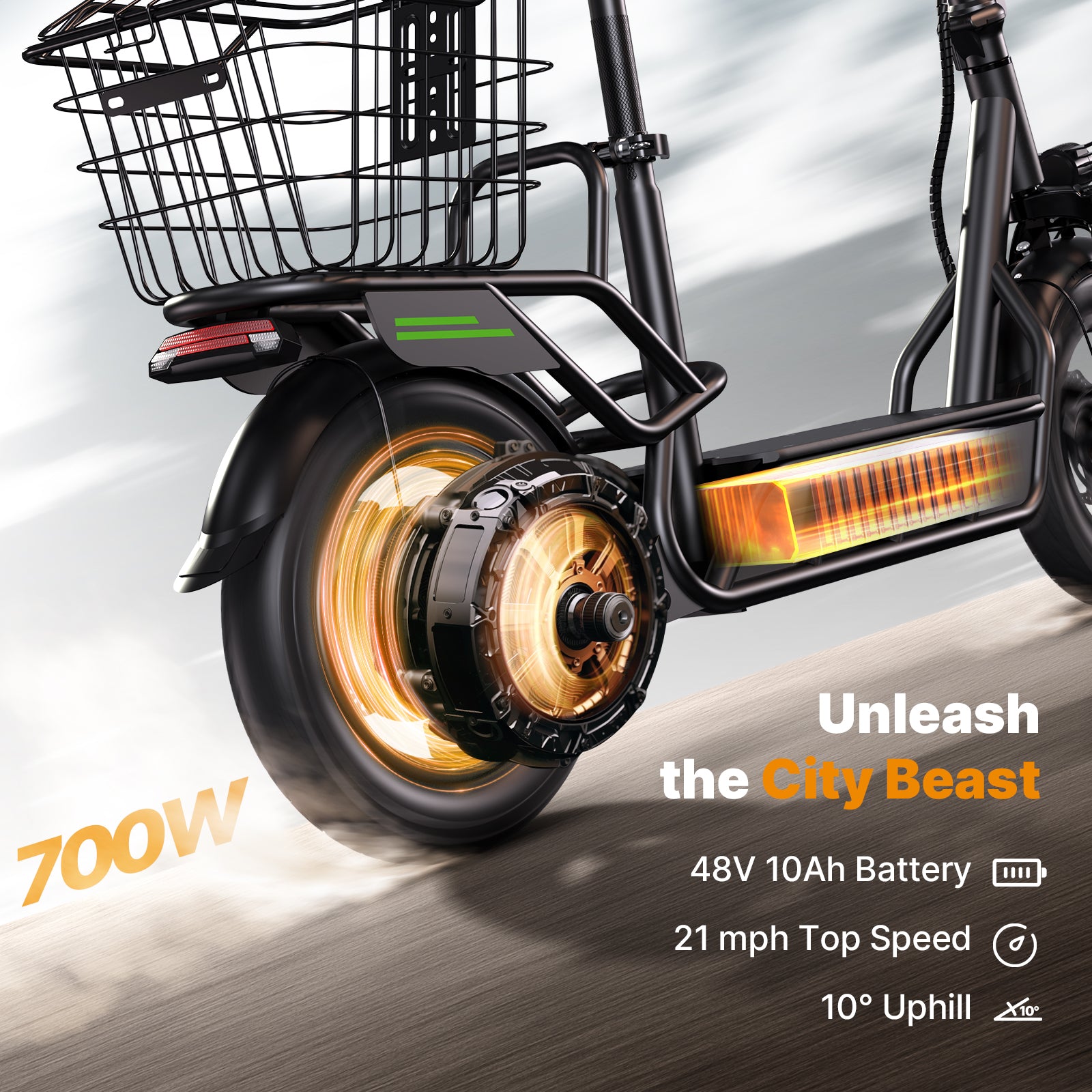 Experience excellent performance with speeds of up to 21MPH and an extended range of up to 28 miles. Equipped with a 700w rear wheel drive motor, The isinwheel Hyper X (48V) 700w Recreational Electric Scooter offers excellent torque and good acceleration. The bright front and rear LED lights with turn signals, front and rear disc brakes with electric brake assist and dual front and rear spring shocks, all help to provide a safer ride for your adventures. Wider foot deck and 14" inch pneumatic tires help you to enjoy a more comfortable ride. The quick folding mechanism and lightweight design offers superior portability and convenience.