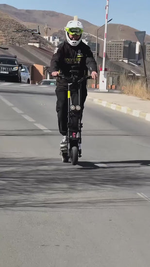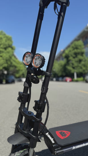 The Kaabo Wolf Warrior X Max (60V) 2200w Multi-Purpose Electric Scooter is a high-performance multi-purpose electric scooter designed for riders seeking speed, range, durability and adaptability. Equipped with dual 1100w motors (totaling 2200w), it reaches a top speed of 44mph, delivering rapid acceleration with the ability to tackle steep inclines and any terrain effortlessly. Its 60V 27Ah lithium-ion battery provides a range of up to 56 miles on a single charge, making it suitable for daily commutes, recreational fun and off roading adventures. Weighing approximately 84lbs, the Wolf Warrior X Max features a sturdy frame constructed from aviation-grade aluminum, ensuring durability without compromising agility. Master every terrain with the Kaabo Wolf Warrior X Max, crafted for unparalleled versatility. Whether commuting or exploring, the Kaabo Wolf Warrior X Max (60V) 2200w Multi-Purpose Electric Scooter seamlessly merges speed, strength, and sustainability, emerging as the ideal choice for adventurous off-road escapades, efficient city commutes and all of your recreational riding. The Kaabo Wolf Warrior X Max (60V) 2200w Multi-Purpose Electric Scooter is designed to provide a smooth and comfortable ride with front patent hydraulic shock absorber and rear C-spring shock absorber accompanied with 10″x3" tubed pneumatic on/off tires. The dual shocks help absorb the shocks and bumps on the road, making your ride more comfortable and stable. The 10″x3" tubed pneumatic tires provide excellent traction, grip and shock absorption, making it easier to ride on different terrains. Whether you are cruising around town or exploring local off-road trails, the Kaabo Wolf Warrior X Max offers a smooth ride you’ll enjoy.